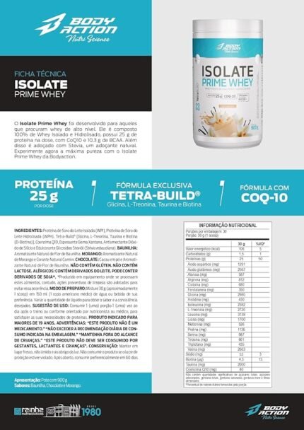 Isolate Prime Whey 900g Sabor Baunilha Bodyaction