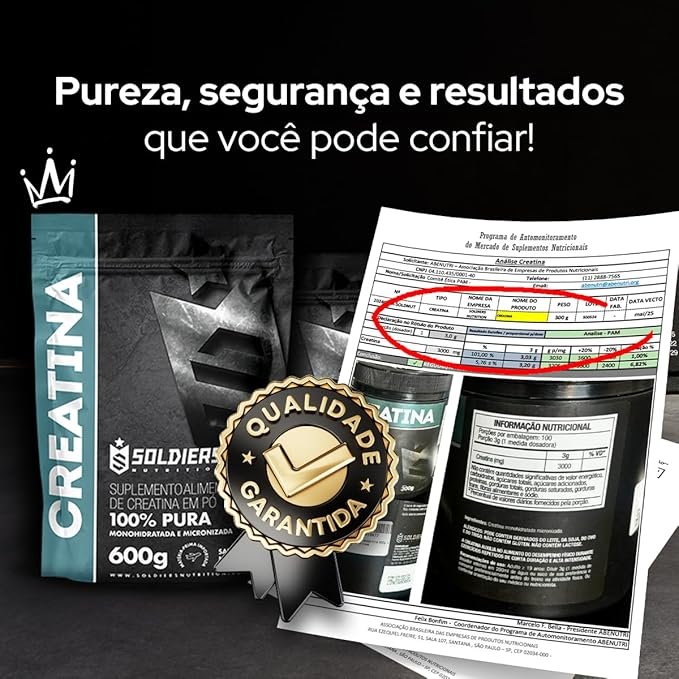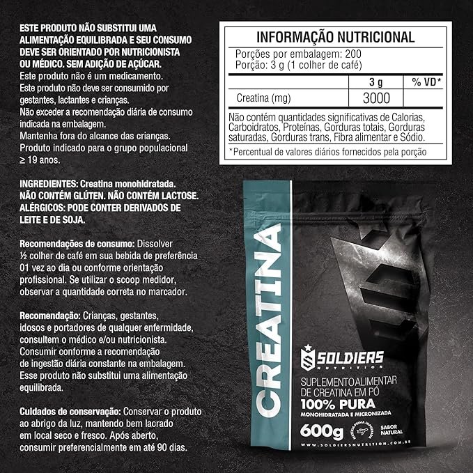 Creatina Monohidratada 600g – 100% Pura Importada – Soldiers Nutrition