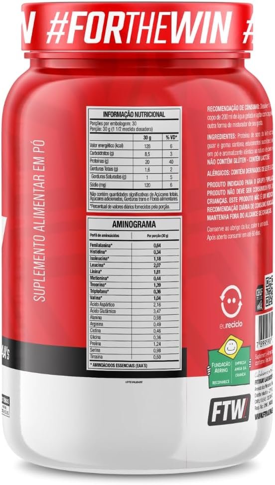 FTW 100% Whey Protein com Proteína Concentrada WPC, Suplemento Alimentar Pós-Treino em Pó com Fonte de Proteína do Soro do Leite, Alto Valor Biológico, Sem Glúten – Pote 900g (Sabor Doce de Leite)