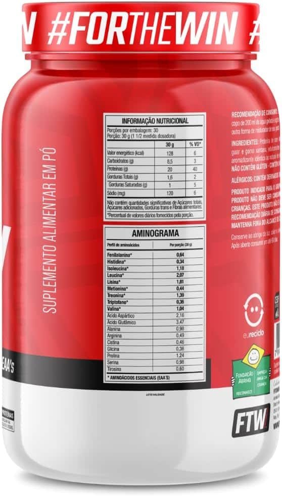 100% Whey Protein FTW é um suplemento alimentar em pó à base de proteína concentrada do soro do leite (WPC), reconhecida por seu alto valor biológico e excelente perfil de aminoácidos essenciais.