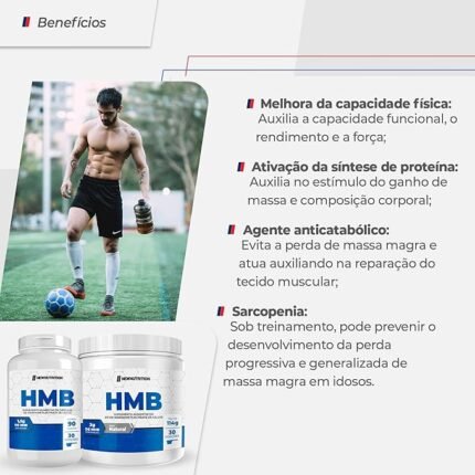 HMB (Hidroximetilbutirato), Hidróxido de cálcio – Ca(OH)2, farelo de arroz em pó (Oryza sativa), aipo marrom em pó (Apium graveolens L.), pimenta preta em pó (Piper nigrum), celulose vegetal, estearato de magnésio vegetal, dióxido de titânio e ácido esteárico vegetal. NÃO CONTÉM GLÚTEN.