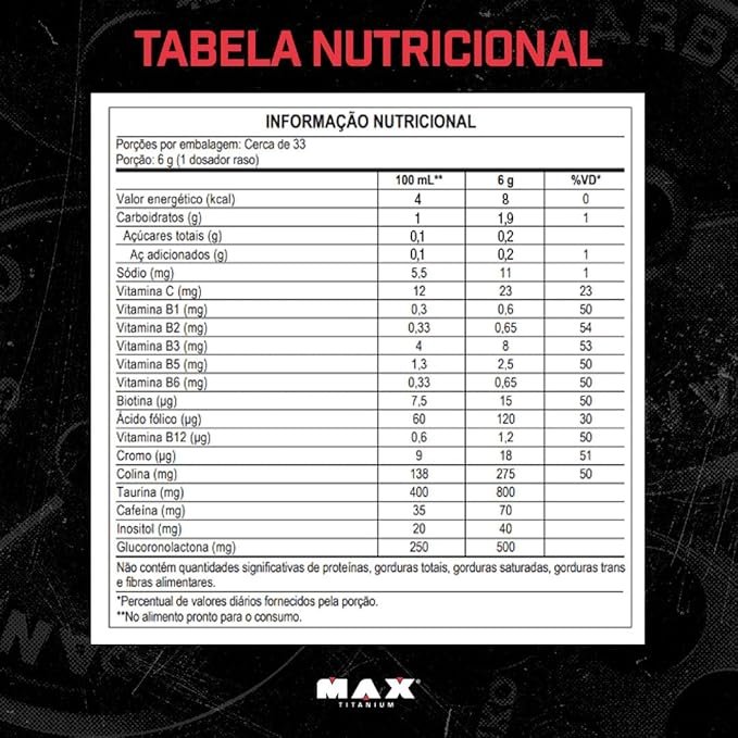 Aditivos ‎Taurina, Cafeína, Baunilha, Morango, Chocolate Duplo, Brigadeiro Gourmet, Original