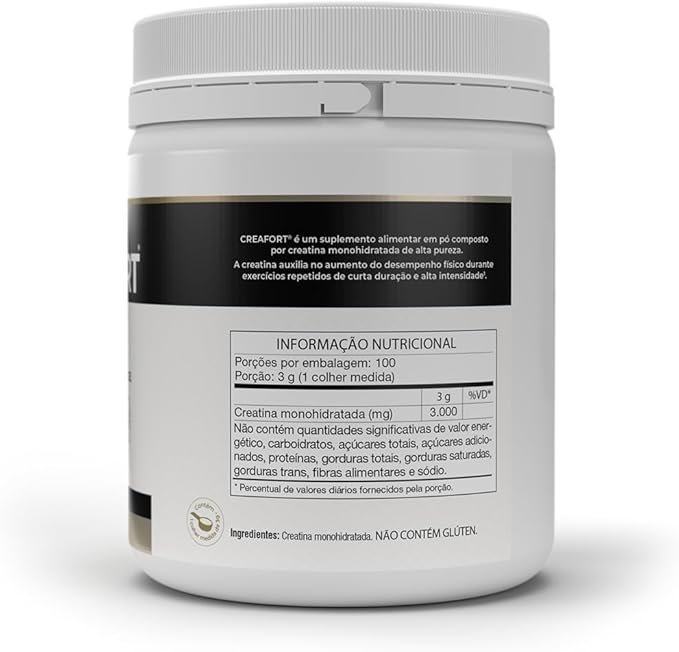CREAFORT é um suplemento alimentar composto por creatina monohidratada de alta pureza. Produzida na Alemanha, por meio de rigorosos processos de qualidade e tecnologia, a creatina Creapure oferece segurança e eficácia para sua rotina.